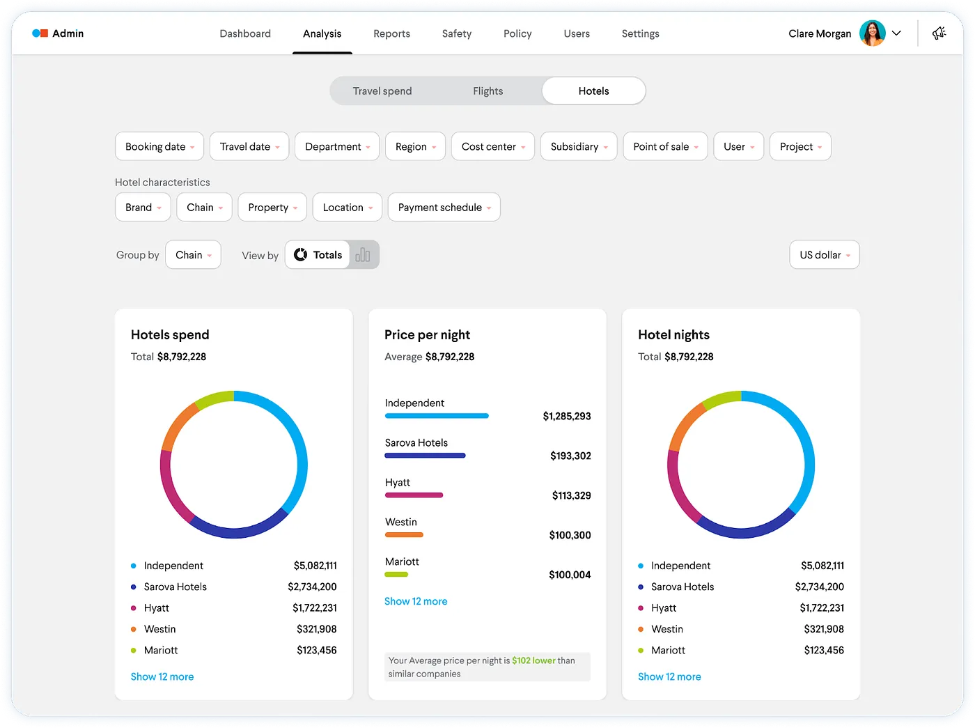 - Policy-embedded booking: Travel policies are built into the booking experience, so employees can only select options that comply with company guidelines.