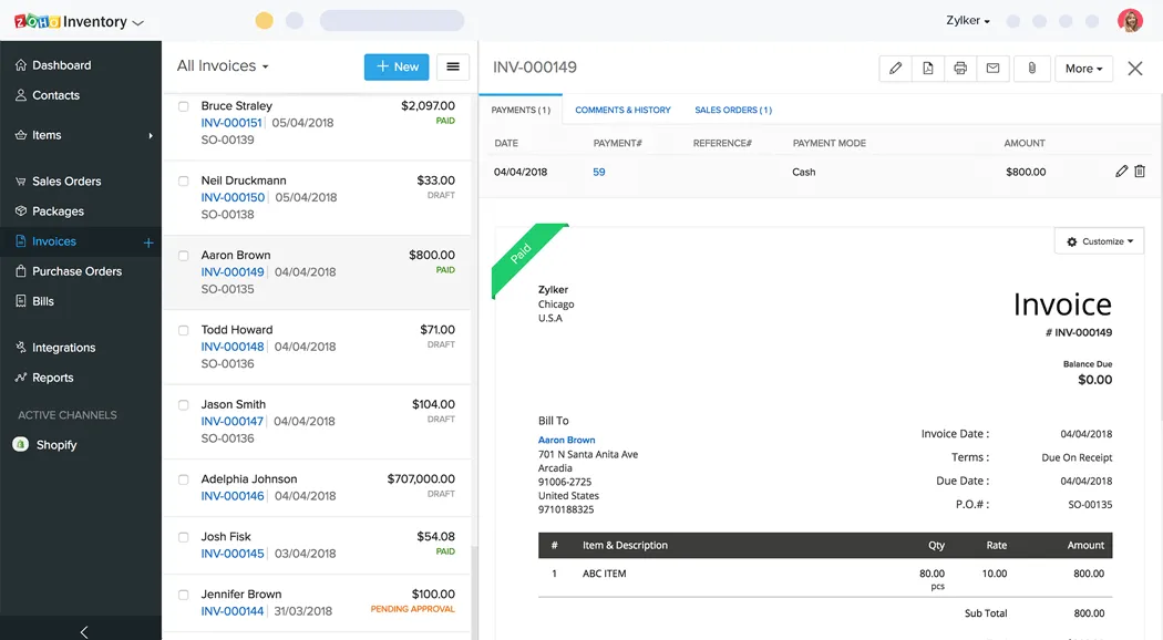 Best for: Freelancers and small businesses that need a free, easy-to-use invoicing tool with professional templates, automated reminders, and seamless integration with the Zoho ecosystem.