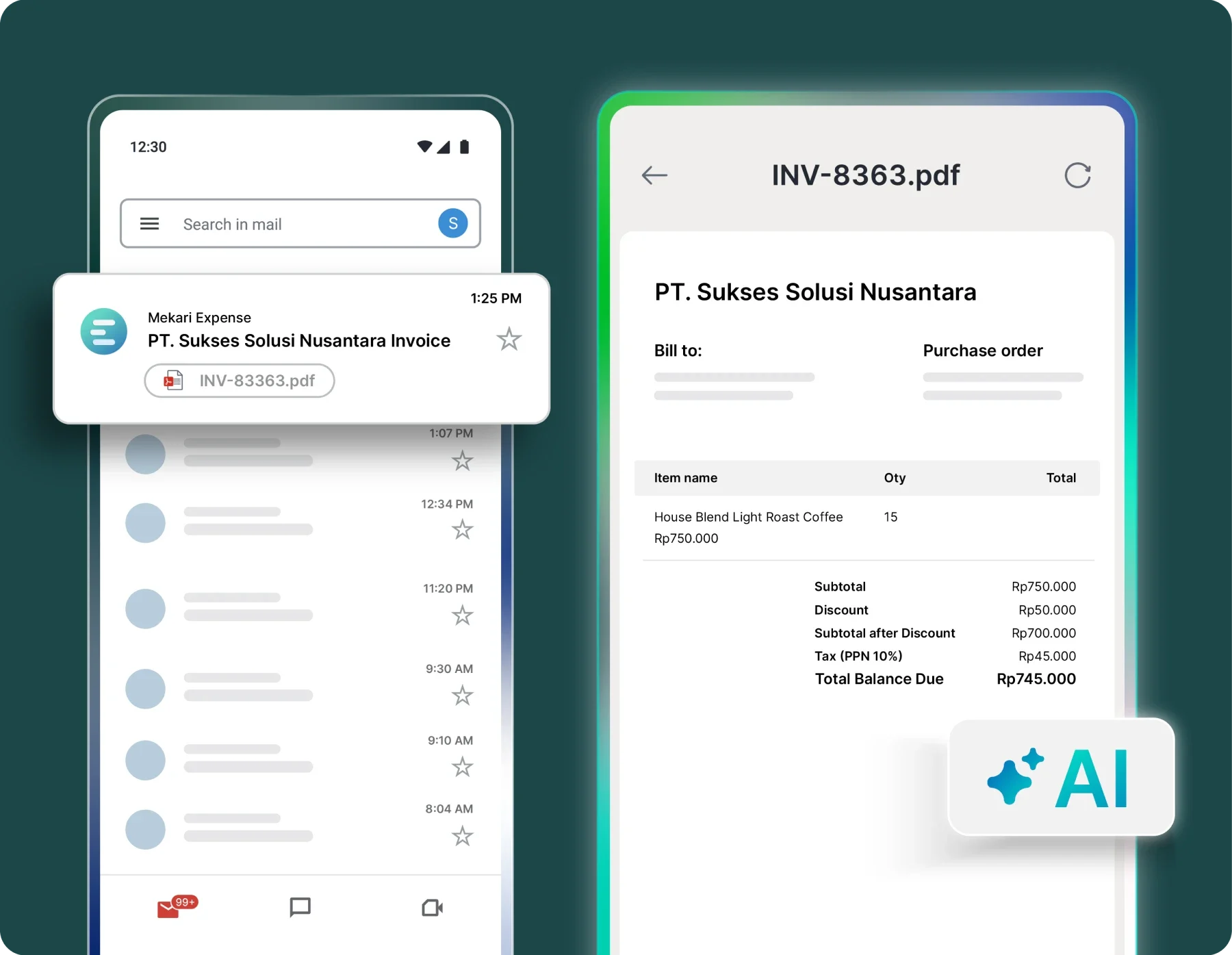 Ya. Mekari Expense dapat mendeteksi faktur yang dikirim melalui email vendor, lalu mengekstrak dan mencatat datanya secara otomatis ke modul Purchase Invoice, tanpa perlu upload manual.