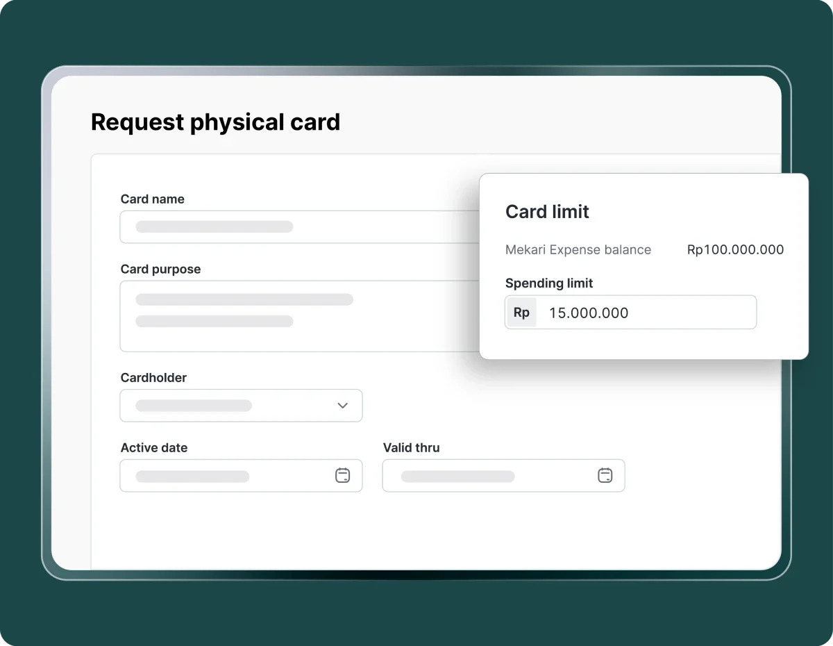 Atur limit dan waktu aktif kartu untuk memastikan setiap transaksi mengikuti aturan perusahaan.