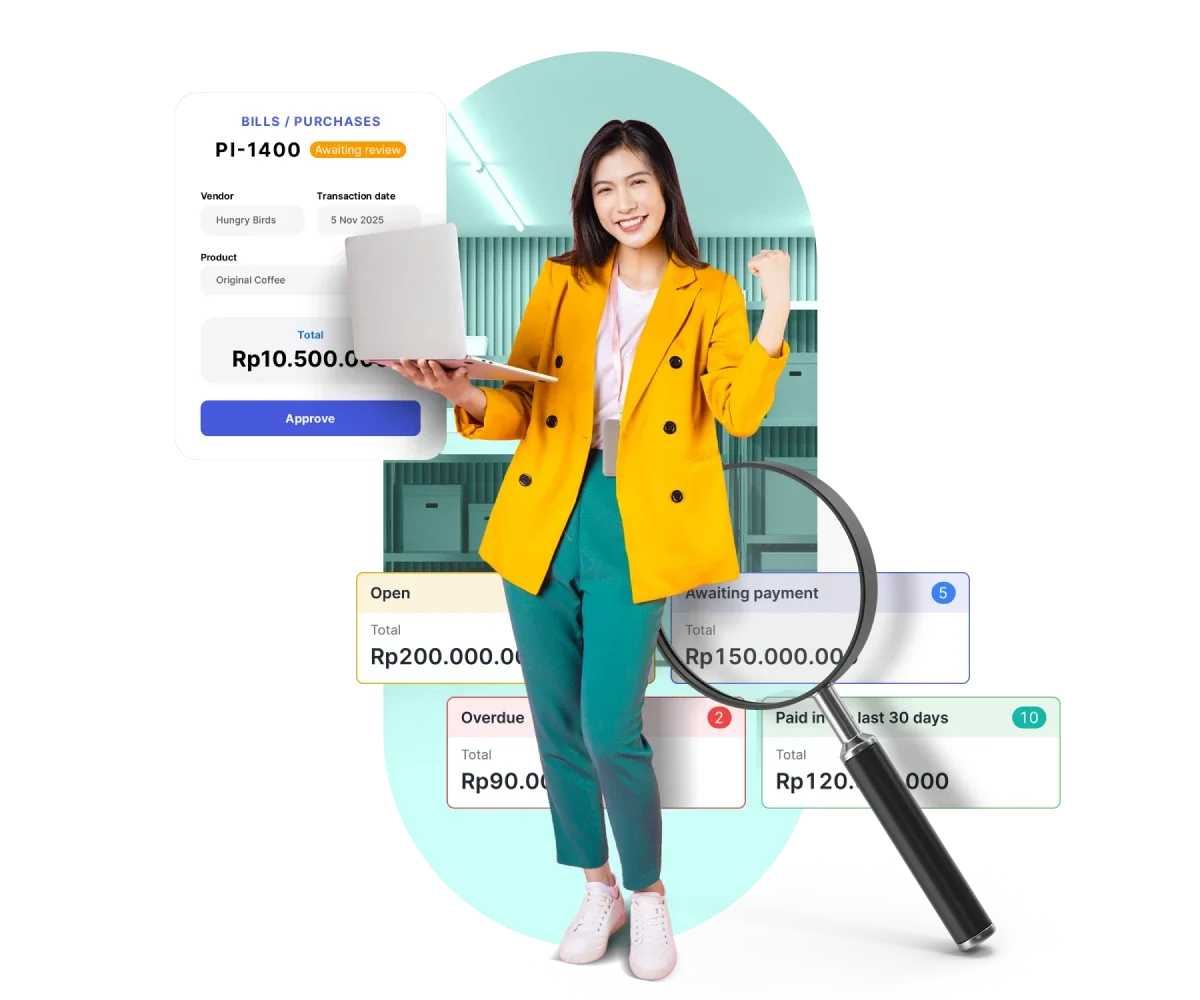 Percepat setiap tahap pengelolaan faktur dari pengajuan hingga pembayaran dalam satu alur terpusat.