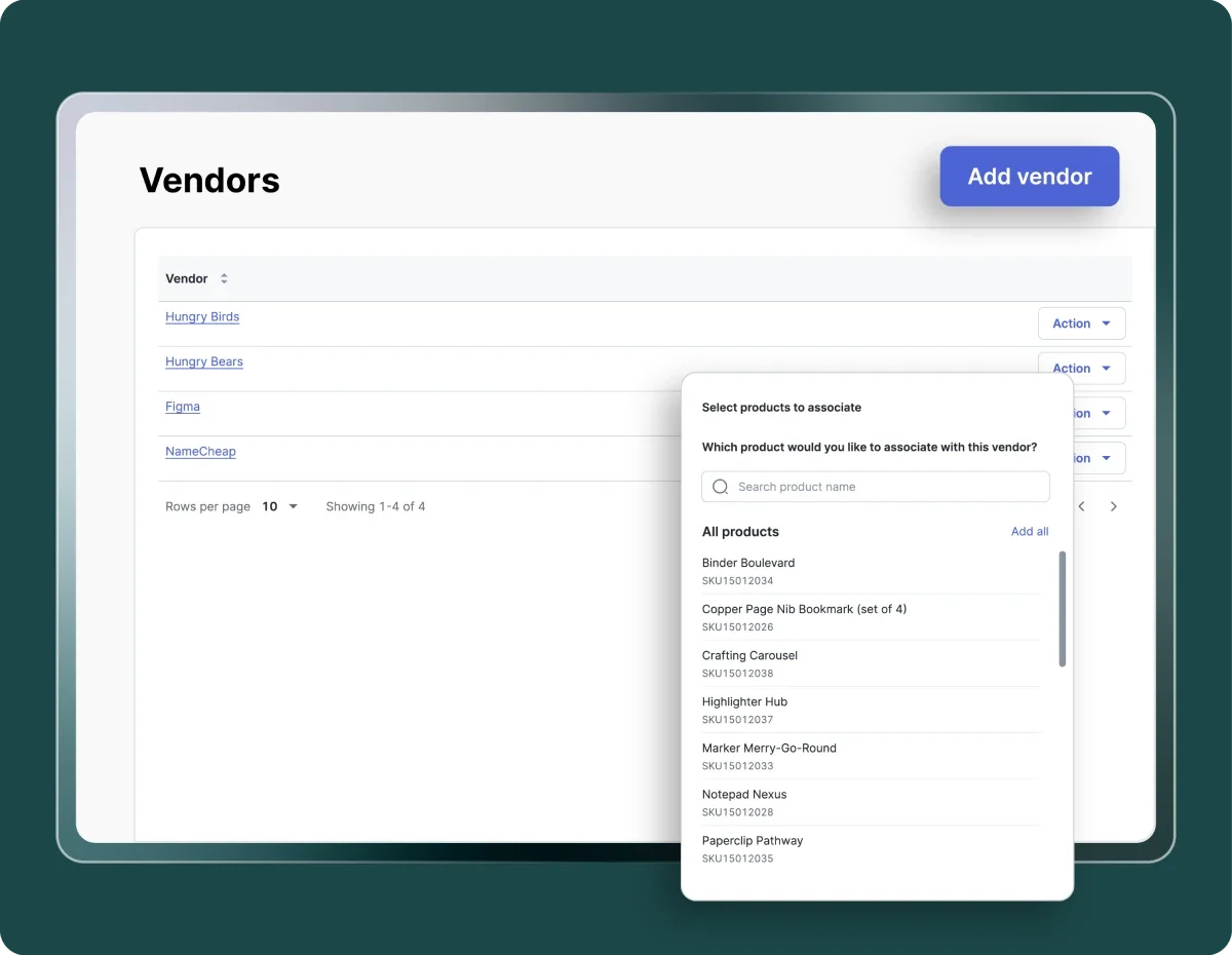 • Mengelola daftar produk untuk memudahkan pemilihan saat membuat PO atau invoice.