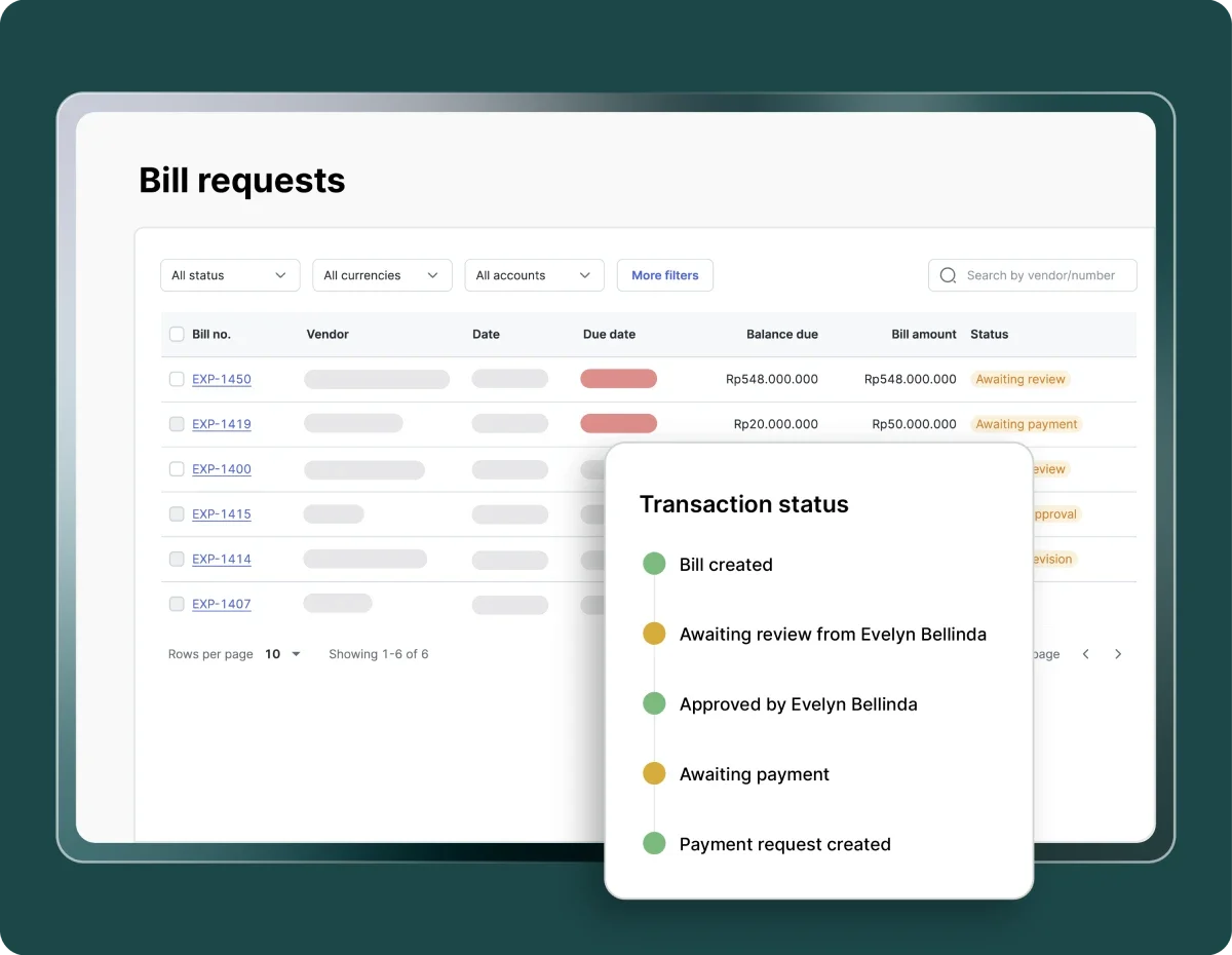 Alur persetujuan dinamis sesuai nilai transaksi, unit bisnis, dan kategori untuk kontrol dan proses lebih cepat.